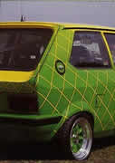 7x13 Smoor mit 175 50v13, Effektlackierung in Grün/Gelb.